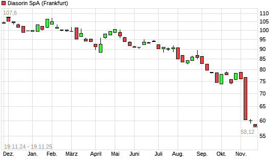 Mit dem Rücksetzer auf 58,68 EUR hat die Diasorin-Aktie (ISIN IT0003492391) am 18.11.2025 ein neues 5-Jahres-Tief erreicht und damit den Kurs vom 17.11.2025 eingestellt.