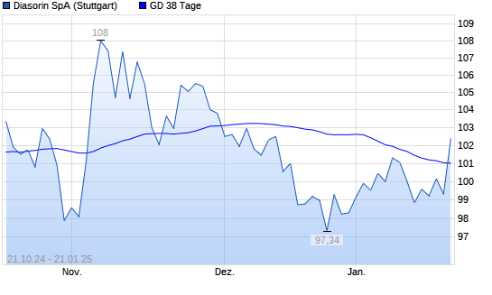 Mit dem Anstieg auf 101,75 EUR hat die Diasorin-Aktie am 20.01.2025 die 38-Tage-Linie nach oben gekreuzt.
