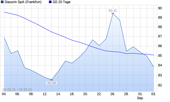 Mit dem Rücksetzer auf 84,96 EUR hat die Diasorin-Aktie am 02.09.2025 die 20-Tage-Linie nach unten gekreuzt.