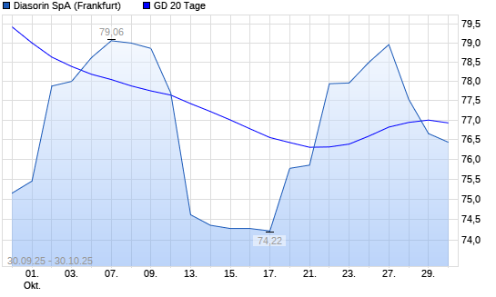 Mit dem Rücksetzer auf 76,66 EUR hat die Diasorin-Aktie am 29.10.2025 die 20-Tage-Linie nach unten gekreuzt.