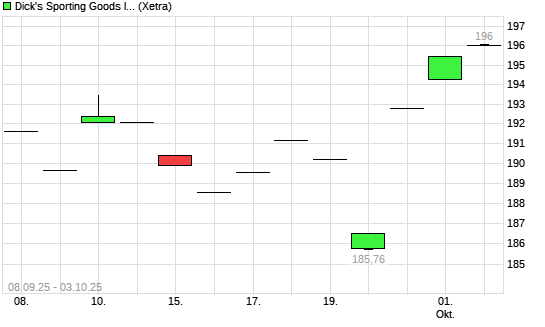 Mit dem Anstieg auf 196,10 EUR hat die Dick's Sporting Goods-Aktie (ISIN US2533931026) am 02.10.2025 ein neues 6-Monats-Hoch erreicht und damit den Kurs vom 12.09.2025 eingestellt.