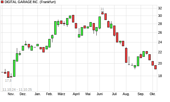 Mit dem Rücksetzer auf 19,00 EUR hat die Digital Garage-Aktie (ISIN JP3549070005) am 10.10.2025 ein neues 6-Monats-Tief erreicht und damit den Kurs vom 20.08.2025 eingestellt.