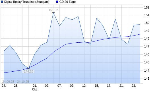 Mit dem Rücksetzer auf 147,76 EUR hat die Digital Realty Trust-Aktie am 23.10.2025 die 20-Tage-Linie nach unten gekreuzt.
