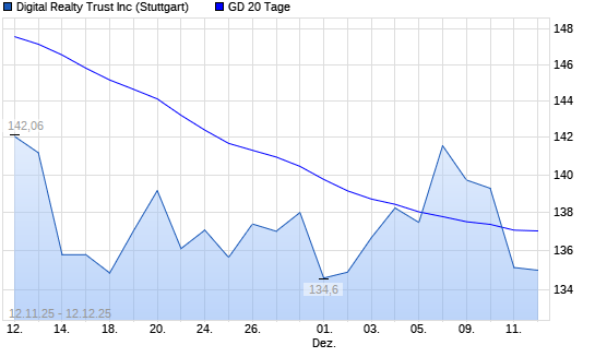 Mit dem Rücksetzer auf 135,26 EUR hat die Digital Realty Trust-Aktie am 11.12.2025 die 20-Tage-Linie nach unten gekreuzt.