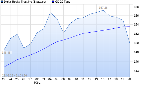 Mit dem Rücksetzer auf 150,00 EUR hat die Digital Realty Trust-Aktie am 20.03.2026 die 20-Tage-Linie nach unten gekreuzt.