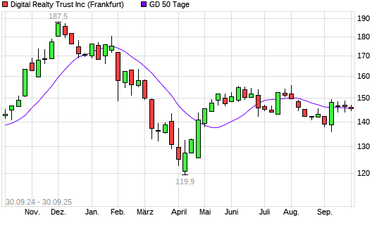 Mit dem Rücksetzer auf 144,64 EUR hat die Digital Realty Trust-Aktie am 29.09.2025 die 50-Tage-Linie nach unten gekreuzt.