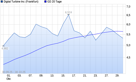 Mit dem Rücksetzer auf 5,50 EUR hat die Digital Turbine-Aktie am 29.10.2025 die 20-Tage-Linie nach unten gekreuzt.