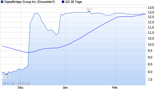 Mit dem Rücksetzer auf 12,90 EUR hat die DigitalBridge-Aktie am 18.02.2026 die 38-Tage-Linie nach unten gekreuzt.