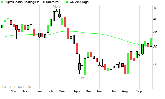 Mit dem Anstieg auf 30,45 EUR hat die DigitalOcean Holdings-Aktie am 02.10.2025 die 200-Tage-Linie nach oben gekreuzt.