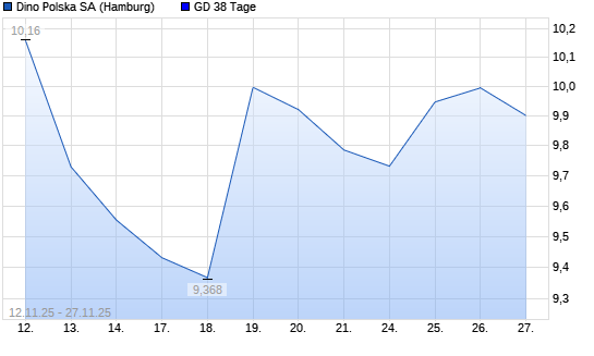 Mit dem Anstieg auf 10,16 EUR hat die Dino Polska SA-Aktie am 26.11.2025 die 38-Tage-Linie nach oben gekreuzt.