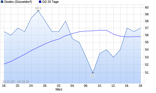 Mit dem Anstieg auf 56,50 EUR hat die Diodes-Aktie am 17.03.2026 die 20-Tage-Linie nach oben gekreuzt.