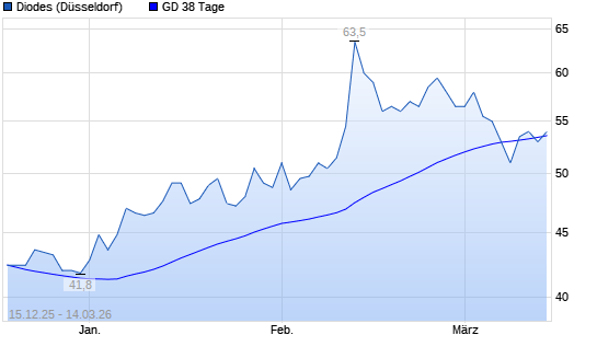 Mit dem Rücksetzer auf 53,00 EUR hat die Diodes-Aktie am 13.03.2026 die 38-Tage-Linie nach unten gekreuzt.