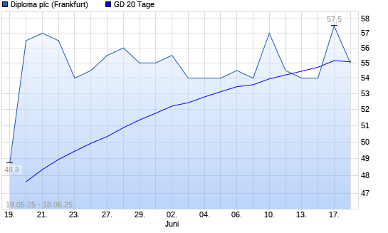 Mit dem Anstieg auf 57,50 EUR hat die Diploma-Aktie am 17.06.2025 die 20-Tage-Linie nach oben gekreuzt.