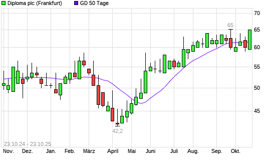 Mit dem Anstieg auf 65,00 EUR hat die Diploma-Aktie am 22.10.2025 die 50-Tage-Linie nach oben gekreuzt.