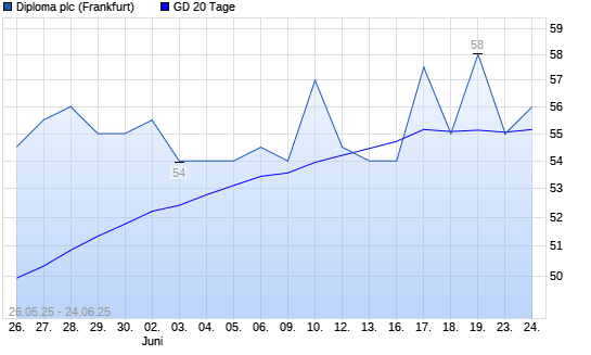 Mit dem Rücksetzer auf 55,00 EUR hat die Diploma-Aktie am 23.06.2025 die 20-Tage-Linie nach unten gekreuzt.