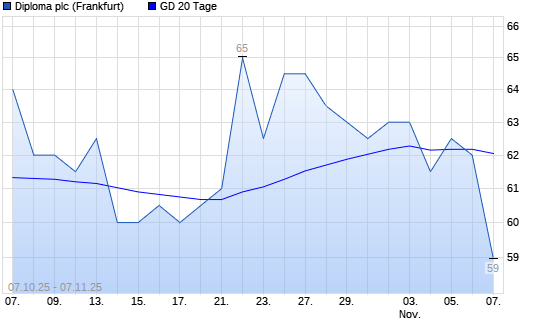 Mit dem Rücksetzer auf 62,00 EUR hat die Diploma-Aktie am 06.11.2025 die 20-Tage-Linie nach unten gekreuzt.