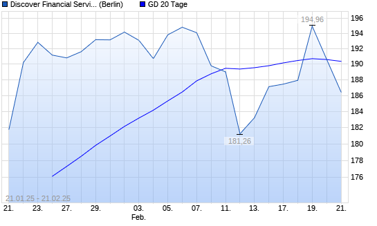 Mit dem Anstieg auf 192,40 EUR hat die Discover Financial Services-Aktie am 20.02.2025 die 20-Tage-Linie nach oben gekreuzt.
