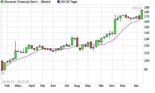 Mit dem Anstieg auf 173,20 EUR hat die Discover Financial Services-Aktie am 14.01.2025 die 50-Tage-Linie nach oben gekreuzt.