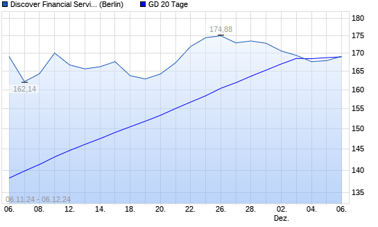 Mit dem Rücksetzer auf 167,94 EUR hat die Discover Financial Services-Aktie am 05.12.2024 die 20-Tage-Linie nach unten gekreuzt.