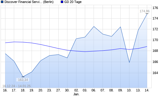 Mit dem Rücksetzer auf 164,48 EUR hat die Discover Financial Services-Aktie am 13.01.2025 die 20-Tage-Linie nach unten gekreuzt.