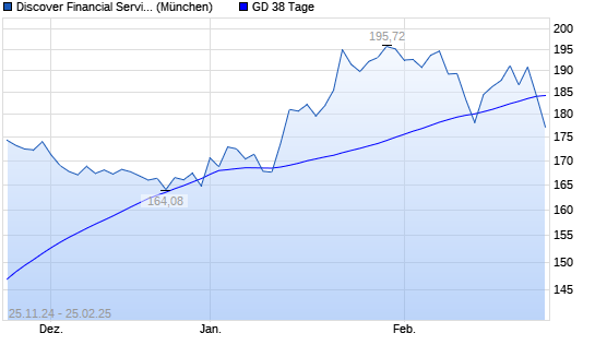 Mit dem Rücksetzer auf 184,12 EUR hat die Discover Financial Services-Aktie am 24.02.2025 die 38-Tage-Linie nach unten gekreuzt.