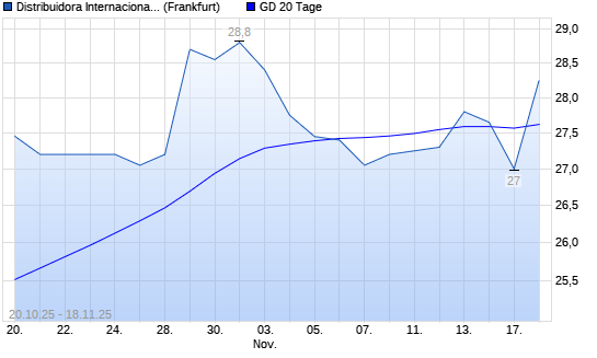 Mit dem Rücksetzer auf 27,00 EUR hat die Distribuidora Internacional de Alimentacion-Aktie am 17.11.2025 die 20-Tage-Linie nach unten gekreuzt.