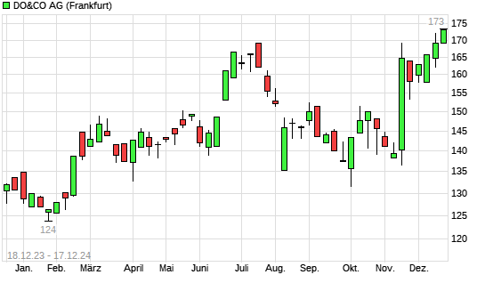 Mit dem Anstieg auf 173,20 EUR hat die Do & Co-Aktie (ISIN AT0000818802) am 16.12.2024 ein neues All-Time-High erreicht und damit den Kurs vom 12.12.2024 eingestellt.