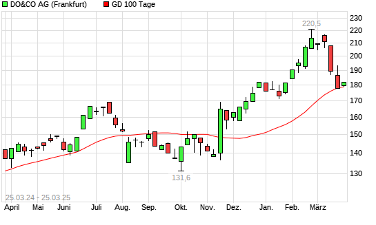 Mit dem Anstieg auf 182,00 EUR hat die Do & Co-Aktie am 24.03.2025 die 100-Tage-Linie nach oben gekreuzt.
