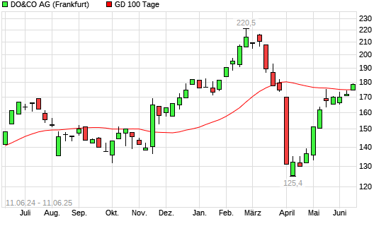 Mit dem Anstieg auf 177,20 EUR hat die Do & Co-Aktie am 10.06.2025 die 100-Tage-Linie nach oben gekreuzt.