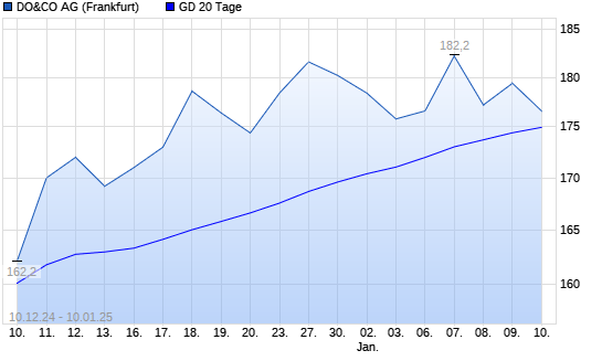 Mit dem Anstieg auf 177,00 EUR hat die Do & Co-Aktie am 09.01.2025 die 20-Tage-Linie nach oben gekreuzt.