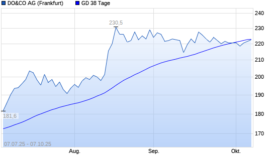 Mit dem Rücksetzer auf 219,50 EUR hat die Do & Co-Aktie am 06.10.2025 die 38-Tage-Linie nach unten gekreuzt.