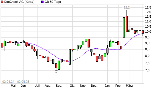 Mit dem Rücksetzer auf 9,85 EUR hat die DocCheck-Aktie am 02.04.2025 die 50-Tage-Linie nach unten gekreuzt.