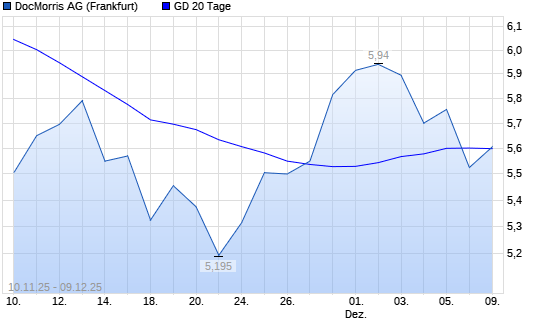 Mit dem Rücksetzer auf 5,52 EUR hat die DocMorris (ex Zur Rose)-Aktie am 08.12.2025 die 20-Tage-Linie nach unten gekreuzt.