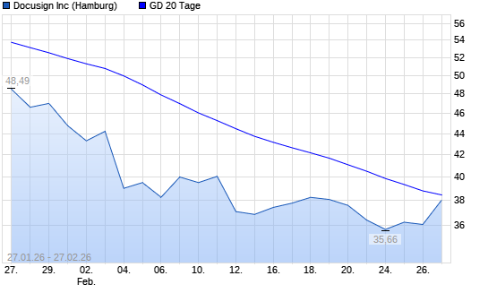 Mit dem Anstieg auf 38,69 EUR hat die Docusign-Aktie am 26.02.2026 die 20-Tage-Linie nach oben gekreuzt.