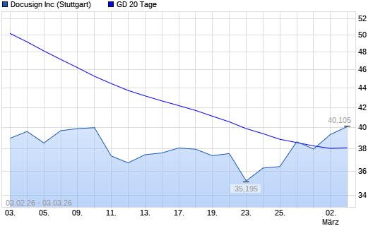 Mit dem Anstieg auf 39,32 EUR hat die Docusign-Aktie am 02.03.2026 die 20-Tage-Linie nach oben gekreuzt.