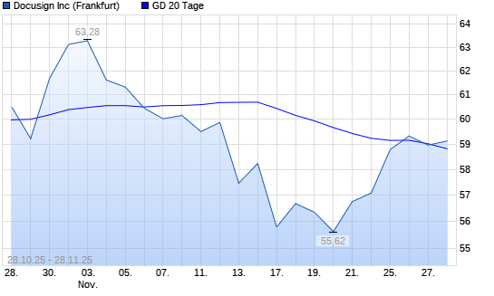 Mit dem Rücksetzer auf 58,97 EUR hat die Docusign-Aktie am 27.11.2025 die 20-Tage-Linie nach unten gekreuzt.