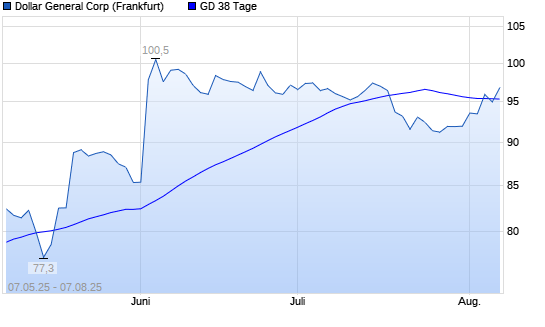 Mit dem Rücksetzer auf 95,28 EUR hat die Dollar General-Aktie am 06.08.2025 die 38-Tage-Linie nach unten gekreuzt.