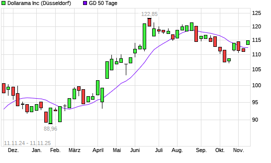 Mit dem Anstieg auf 113,75 EUR hat die Dollarama-Aktie am 10.11.2025 die 50-Tage-Linie nach oben gekreuzt.
