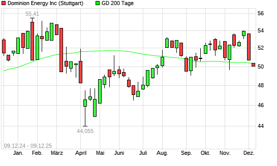 Mit dem Rücksetzer auf 49,89 EUR hat die Dominion Energy-Aktie am 08.12.2025 die 200-Tage-Linie nach unten gekreuzt.