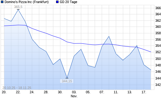 Mit dem Rücksetzer auf 348,15 EUR hat die Domino's-Aktie am 17.11.2025 die 20-Tage-Linie nach unten gekreuzt.