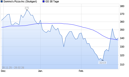 Mit dem Rücksetzer auf 336,30 EUR hat die Domino's-Aktie am 27.02.2026 die 38-Tage-Linie nach unten gekreuzt.