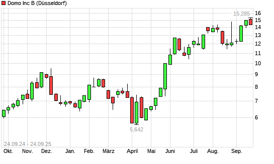 Mit dem Anstieg auf 15,25 EUR hat die Domo-Aktie (ISIN US2575541055) am 23.09.2025 ein neues 12-Monats-Hoch erreicht und damit den Kurs vom 22.09.2025 eingestellt.