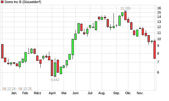 Mit dem Rücksetzer auf 8,49 EUR hat die Domo-Aktie (ISIN US2575541055) am 05.12.2025 ein neues 6-Monats-Tief erreicht und damit den Kurs vom 21.11.2025 eingestellt.