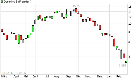 Mit dem Rücksetzer auf 3,39 EUR hat die Domo-Aktie (ISIN US2575541055) am 17.02.2026 ein neues All-Time-Low erreicht und damit den Kurs vom 16.02.2026 eingestellt.