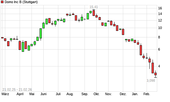 Mit dem Rücksetzer auf 3,11 EUR hat die Domo-Aktie (ISIN US2575541055) am 20.02.2026 ein neues All-Time-Low erreicht und damit den Kurs vom 19.02.2026 eingestellt.