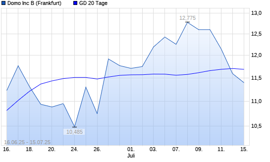 Mit dem Rücksetzer auf 11,60 EUR hat die Domo-Aktie am 14.07.2025 die 20-Tage-Linie nach unten gekreuzt.
