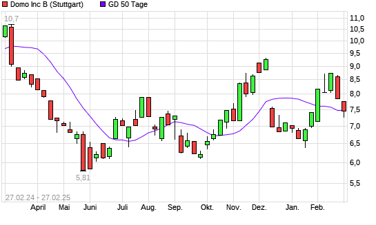 Mit dem Rücksetzer auf 7,24 EUR hat die Domo-Aktie am 26.02.2025 die 50-Tage-Linie nach unten gekreuzt.