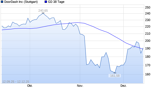 Mit dem Anstieg auf 191,14 EUR hat die DoorDash-Aktie am 11.12.2025 die 38-Tage-Linie nach oben gekreuzt.