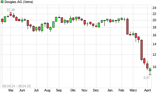 Mit dem Rücksetzer auf 9,70 EUR hat die Douglas AG-Aktie (ISIN DE000BEAU7Y1) am 07.04.2025 ein neues All-Time-Low erreicht und damit den Kurs vom 04.04.2025 eingestellt.