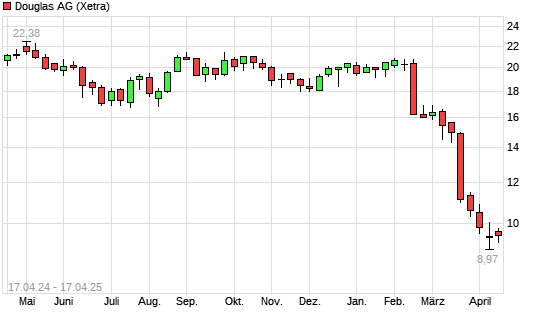Mit dem Rücksetzer auf 9,34 EUR hat die Douglas AG-Aktie (ISIN DE000BEAU7Y1) am 16.04.2025 ein neues All-Time-Low erreicht und damit den Kurs vom 09.04.2025 eingestellt.